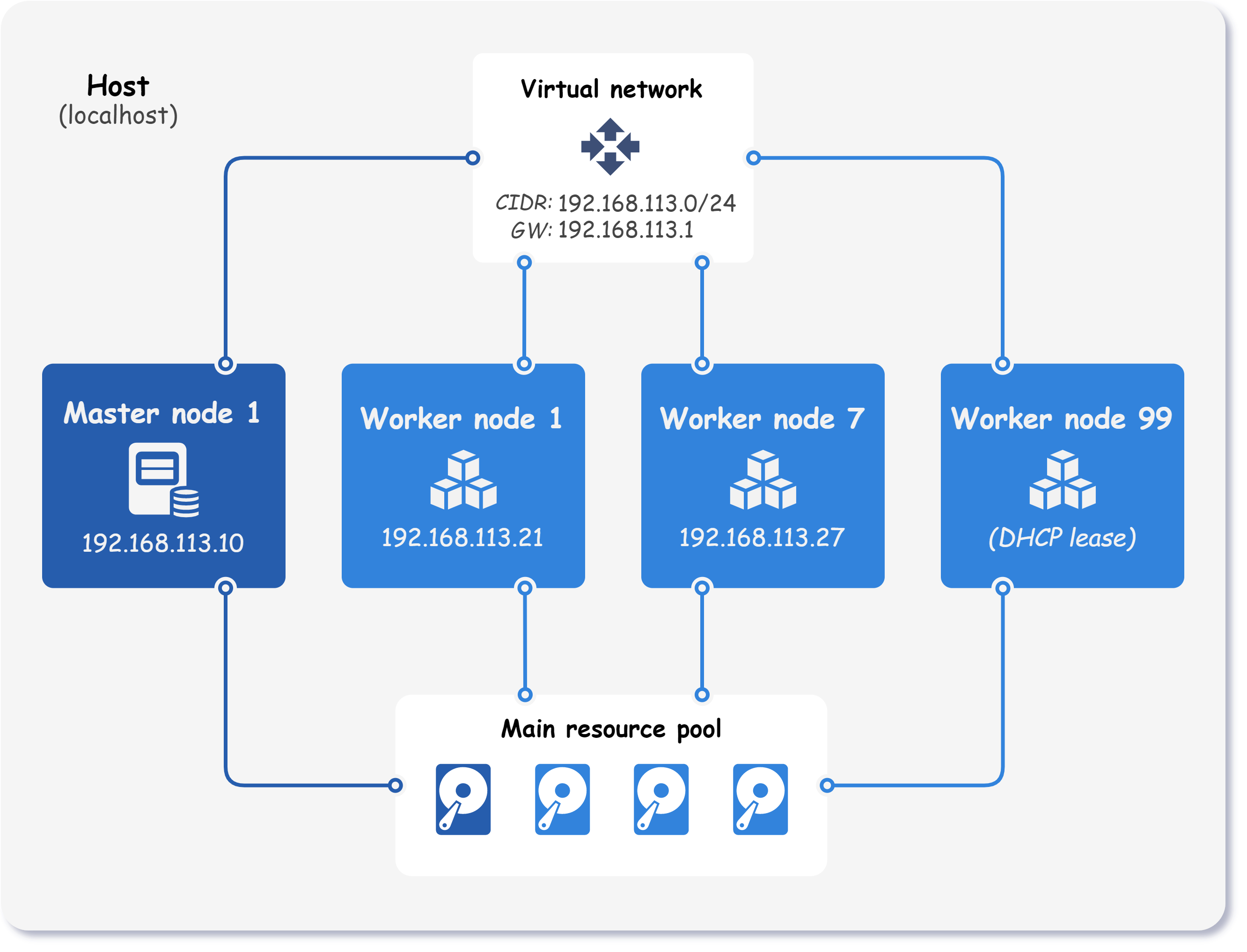 This example shows how to use Kubitect to set up a Kubernetes cluster with one master and three worker nodes.